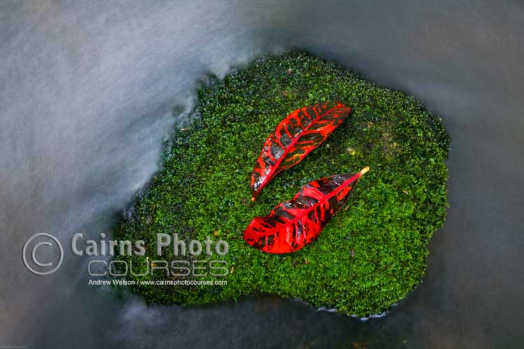 - Colourful rainforest detail with long exposure for water. Canon 5D, Tripod, 58mm, ISO 100, f16 @ 10 sec